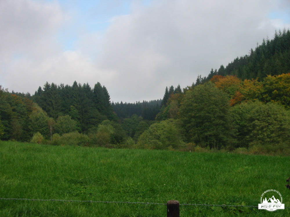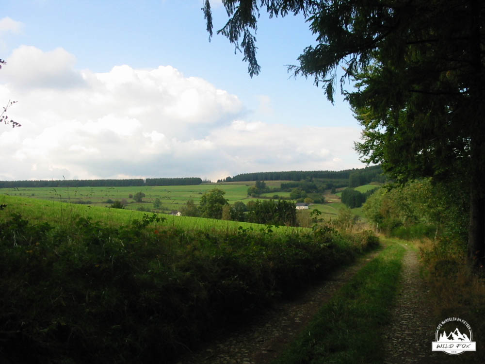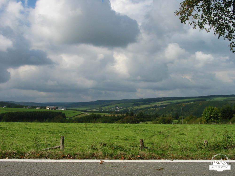 Deze wandeling start bij de kerk van Schonberg, een klein gehucht dat deel uitmaakt van de gemeente Sankt-Vith. De wandeling die we vandaag gaan volgen is eigenlijk de blauwe nordic walking route. We volgen deze bordjes voor 8.9km.