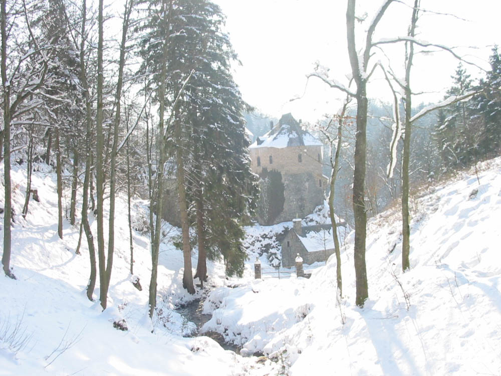Zeer mooie wandeling vanaf de parkeerplaats van de dam van Robertville. Al snel komen we aan bij het kasteel van Reinhardstein, gebouwd in 1354 op een rotsachtige top (zie foto’s).