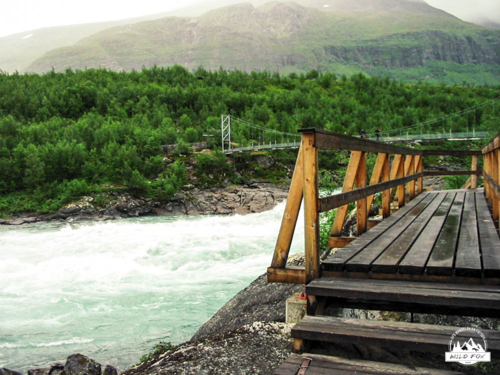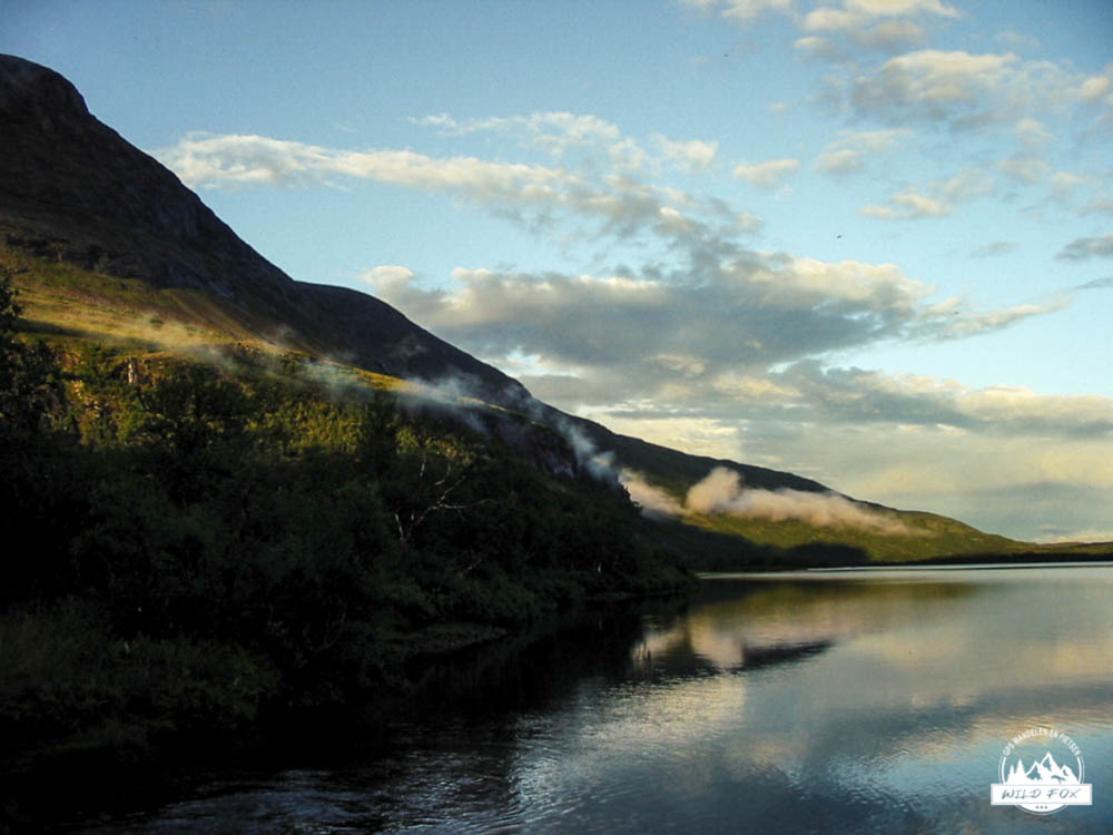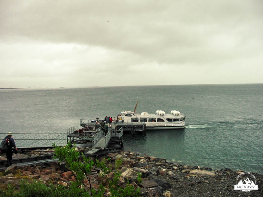 Onze laatste nacht in de wildernis was een goede geweest, we hadden lekker geslapen. Dit zou onze laatste dag van onze trektocht worden, nog 13km scheidde ons van de bewoonde wereld. Om in Kvikkjokk te geraken moeten we op het einde nog een bootje nemen wat de laatste keer vertrekt om 18u, dit moeten we zeker halen. Om 14u is er ook nog één, en die zouden we graag halen dan kunnen we de bus nog nemen naar Jokkmokk. Na het ontbijt trokken we op pad voor onze laatste dag, de eerste 2km waren nog ruig maar vanaf dan ging het een pak vlotter. We liepen in een dennenbos, dit was lang geleden. Dit ging gepaard met hele zwermen muggen die onze rustpauzes serieus verstoorden. We passeerden een wilde rivier waar het water azuurblauw van was, prachtig! Stilaan kwamen we in de buurt van de bewoonde wereld, dit ondervonden we aan een man die met een quad in het bos aan het crossen was, foei! We kregen al heimwee naar de wildernis, ook al waren we er eigenlijk nog niet uit. Ik zei tegen Inga:”Geniet maar van de laatste kilometer”. Maar voor we het wisten stonden we aan de steiger waar we de boot moesten nemen. Het was afgelopen, we hadden de Padjalantaleden helemaal uitgewandeld. We waren er terecht fier op, zeker als je weet dat Inga de laatste 30km met een gebroken enkel gelopen heeft, chapeau!