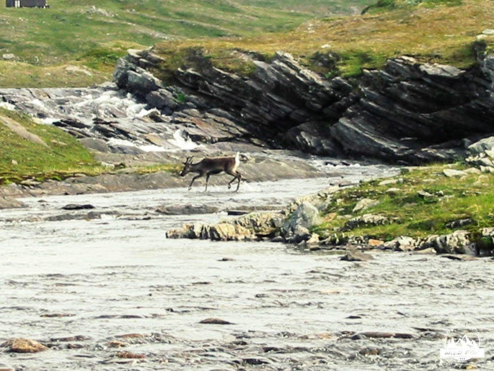 De dag begon weer vroeg, al waren we deze nacht wakker geworden van het slechte weer. De regen en wind kletterde tegen de ramen. Vandaag zou het een overgangsetappe worden: eerst nog een klein beetje bergop, dan in een lichtjes dalende lijn naar beneden. Het hoogste punt van onze volledige trektocht zullen we vandaag bereiken: 1000m. We plannen om redelijk vroeg in de namiddag aan te komen in Tarraluoppal om nog een beetje te genieten van de omgeving en de beentjes wat rust te geven. Die rust zal goed van pas komen want we beginnen stilaan te voelen dat we al 5 dagen aan het stappen zijn. De omgeving van de wandeltocht deed ons een beetje denken aan de Vanoise in de Franse alpen een paar jaar geleden. Lage groene begroeiing met hier en daar mooie bloemen en vele rotsblokken. Toen moesten we een rivier oversteken wat niet al te moeilijk was. Eens de rivier overgestoken begon het een beetje te regenen. Toch maar voor alle zekerheid onze regenkledij aantrekken wat geen slecht idee was. Het was nog 5km maar de regen duurde maar een half uurtje dus erg nat werden we niet. Toen kwamen we bij een sneeuwplek waar 4 rendieren vredig lagen te slapen. Sssst, stil zijn misschien kunnen we een mooie foto nemen. We konden redelijk kort komen en de foto lukte verbazend goed. Voor we het wisten zagen we de hutten staan in de verte, maar het was nog wel een uurtje stappen. Net voor de hutten moesten we nog over een hangbrug oversteken, deze was uitgerust met maar 2 houten planken en was nogal wankel. Zeer voorzichtig zijn we ze zonder problemen overgestoken. Het was kwart voor 2 dus we hadden nog tijd genoeg om onze was een beetje te doen.