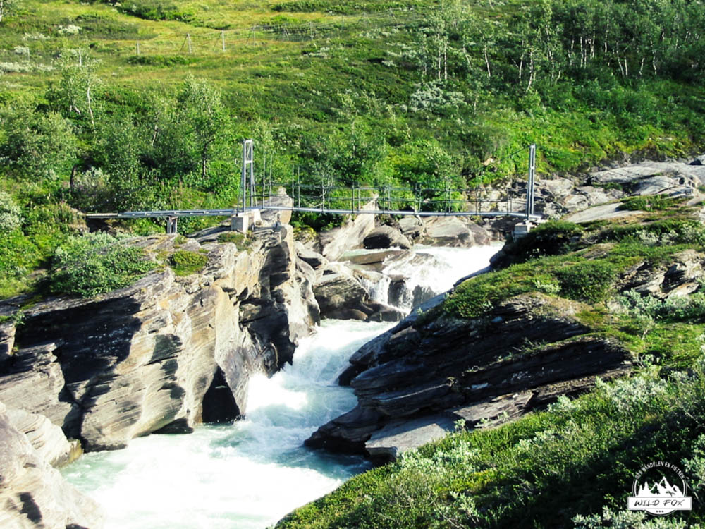 De ochtend was er weer snel, ook al lagen we vroeg in ons bed gisterenavond. De vermoeidheid begint ons duidelijk parten te spelen, we kunnen het niet ontkennen. Vandaag zou het een wandeling worden van 15km, niet moeilijk, maar ook niet gemakkelijk. Na ons dagelijks bord muesli konden we vertrekken. Vanaf hier zouden we definitief afscheid nemen van de kale bergtoppen en ons in een meer bosrijke omgeving bevinden, we dalen immers af naar onder de boomgrens. Bosrijk maar ook meer met beestjes lieten we ons vertellen door onze “stugvard”, beren, wolven, otters,… we kregen er rillingen van. Inga begon de wandeling met een klein hartje, ze ziet graag beestjes maar ze zo in het wild tegenkomen…? We begonnen er aan en de zon stond hoog aan de hemel. Zoals het er nu uit ziet zal het een stralende dag worden. Om 8u is het zelfs al 16°C. Het eerste stuk ging vrij gemakkelijk, tot aan de eerste rivier waar onze schoenen al uit moeten. Het water was serieus koud maar dit was goed om wakker te worden. Waar we een beetje bang voor waren werd de waarheid, de benen zijn moe ze willen niet meer. Maar we moeten, we zullen de knop moeten omdraaien en op karakter verder gaan, we hebben dan ook al 110km in de benen. De vorige dagen waren we blij dat we van de houten paadjes vanaf waren, nu was het een opluchting dat we er tegenkwamen want dat stapte goed. Het werd duidelijk dat de begroeiing dichter werd, op sommige plaatsen moesten we er ons bijna doorwringen. Door de vele grote rotsblokken en boomwortels op het pad, werd deze wandeling toch wel wat moeilijker en begon het tempo te dalen. Bruggetjes over de vele riviertjes waren er bijna niet meer, dus moesten we onze wandelstokken nemen en over de stenen lopen. Soms hadden we prachtige panorama’s tussen de bomen door. Zo’n natuur hadden wij nog nooit eerder gezien, het was volledig wat wij verwachtte van Zweden. In de verte zagen we een bord staan, toen we korter kwamen zagen wat dit wilde betekenen. We waren aan de rand gekomen van het Padjalanta Nationaal park. We hadden het gehaald, we hadden het Nationaal park van noord naar zuid doorgewandeld. Na een steile bergaf en een hangbrug kwamen we uit in een ander natuurpark waar de begroeiing nog dichter was. Vanaf hier kregen we meer en meer last van de muggen, maar we wisten het op voorhand. Gelukkig waren er nog veel houten paadjes waar we gemakkelijker konden op stappen dan op de rotsige paadjes, alhoewel gemakkelijker? Ik, Kevin, hoorde roepen. Het was Inga, ze was gevallen en had haar voet terug omgeslagen en een krak gevoeld. Het is toch niet waar hé, we zitten nog 30km verwijdert van de bewoonde wereld, dit is wel het laatste wat we wensten. 8 weken geleden brak ze deze enkel en alles bleek genezen, tot nu. Een Zweeds koppel stopte nog om hulp te bieden, maar het zou wel gaan zei Inga. Nog 3km te gaan tot de hut, dan kan er gerust worden en kan de voet verzorgd worden. Aangekomen bij de hut bleek dat deze een winkeltje had, hier hebben we ons eens laten gaan. Spaghetti en cola was wat we kochten. Die avond hebben we genoten van de pasta en zijn we op tijd gaan slapen. Wat de voet betreft zullen we morgenvroeg wel beslissen: verder gaan of helicopter?