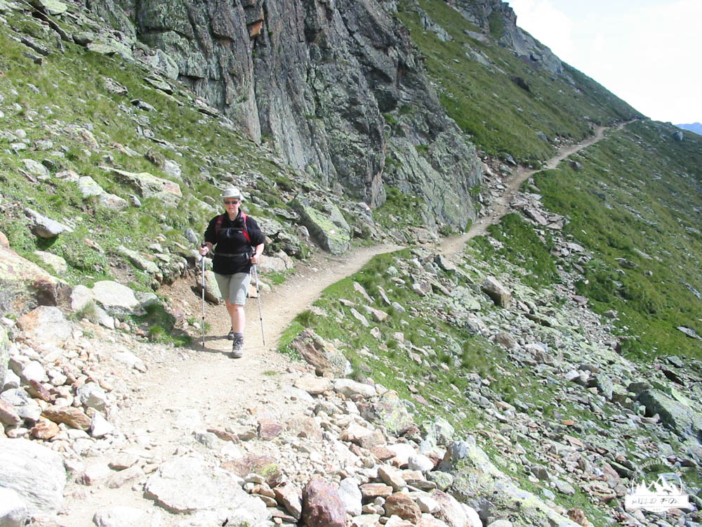 Aangekomen bij de parking beginnen we meteen te wandelen, hier is trouwens ook niets anders dan een parking. We weten dat we vandaag enkel maar gaan dalen dus onze spieren zullen de ganse wandeling onder spanning staan. Het uitzicht van boven op de berg is fenomenaal, dit zal het trouwens de ganse dag zijn. De wandelpaden van deze tocht zijn allemaal vrij gemakkelijk bewandelbaar buiten een aantal uitzonderingen maar deze zijn zeer schaars. Het eerste deel van de tocht gaan vrij gematigd bergaf en we ondervinden dan ook nergens problemen. AL vrij snel staan we bij een bergmeertje waar we onze middagpauze houden in een stralend zonnetje. Na deze pauze zetten we onze tocht verder. Op de kaart hadden we gezien dat het moeilijkste stuk nu komt. Op sommige plaatsen is het vrij steil naar bededen en soms is het wandelpad dat mijn hoogtevrees me parten begint te spelen. We nemen ruim de tijd om deze passage te nemen, we hebben immers toch ruim de tijd om tot beneden te komen.