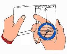 STAP 1: Draai de gradenring van het kompas tot de 0° gelijk staan met de index van het kompas.