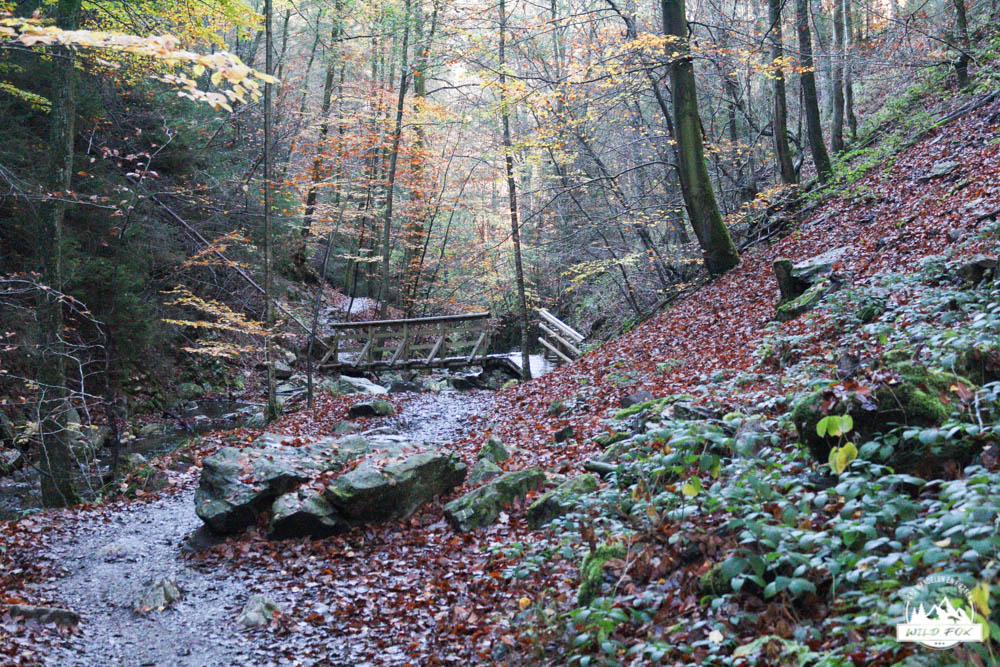 Wij vertrekken redelijk vroeg, dan blijven we de grote menigte nog een beetje voor en kunnen we genieten van het riviertje en zijn omgeving. Het is er prachtig! Mooie rotspartijen, watervalletjes en stroomversnellingen. Het wandelpad varieert nogal van gemakkelijk bewandelbaar tot soms opletten omdat de rotsen nogal glad zijn wanneer het vochtig weer is. Ik herinner me nog van in het verleden dat Inga hier eens uitgeschoven is pardoes in het riviertje. Dat was toen lachen geblazen! Maar nu met onze jongens, en het weer was niet al te warm, zouden we dit toch niet zo graag meemaken. We klauteren ons een weg naar boven, genietend van de natuurpracht. Eens boven aangekomen bevinden we ons op een brede weg die gemakkelijk bewandelbaar is. Deze weg zal ons terug naar beneden brengen, waar de auto geparkeerd staat.