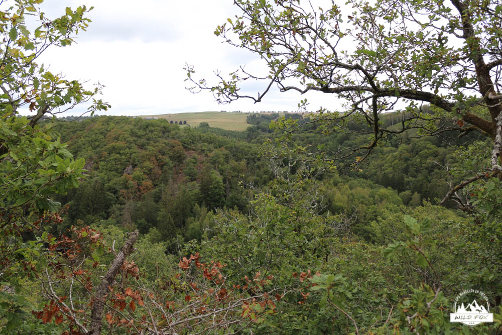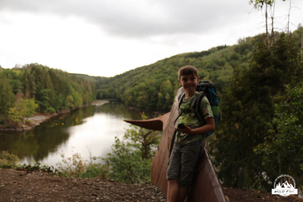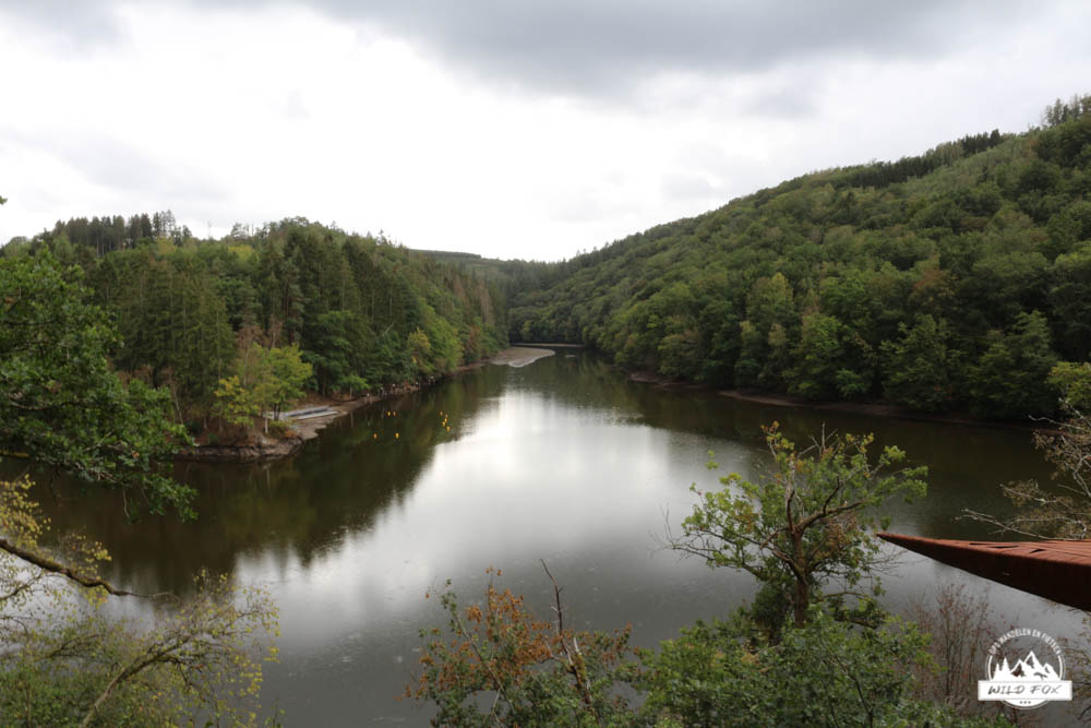 Vandaag gingen we naar een plaats waar wij, Kevin en Inga, een aantal jaren geleden al eens een wandeling gedaan hadden. We herinnerden ons dat dit een zeer mooie wandelstreek is. Steile hellingen, hoge rotspartijen en een schitterend stromende rivier. We starten aan de stuwdam van Nisramont, waar voldoende parkeergelegenheid is. Meteen na de taverne moeten we steil omhoog het bos in, onze kuiten beginnen al te branden maar eens we boven zijn is het uitzicht adembenemend. De Ourthe stroomt diep beneden ons richting de stuwdam. We wandelen hoog op de rotsen, eerst weer op dan weer af. Bij regenweer moet je hier wel opletten op de gladde rotsen. Na een tijdje moeten we afdalen naar de samenstroming van de 2 Ourthes, hier is de perfecte plaats om onze boterhammetjes op te eten. We genieten met zijn vieren van het adembenemende uitzicht. Na een deugddoende maaltijd stappen we verder. Nu geleidelijk aan bergop, de lus terug dichtmaken op weg naar het stuwmeer. We passeren dennenbossen en weilanden. Verderop gaan we steil naar beneden terug naar de Ourthe. Dit stuk wordt blijkbaar niet zoveel bewandeld, het onkruid staat heel hoog en het paadje is dicht begroeid. Even later komen we terug aan het stuwmeer. Wat hebben we toch weer genoten van onze mooie Ardennen!