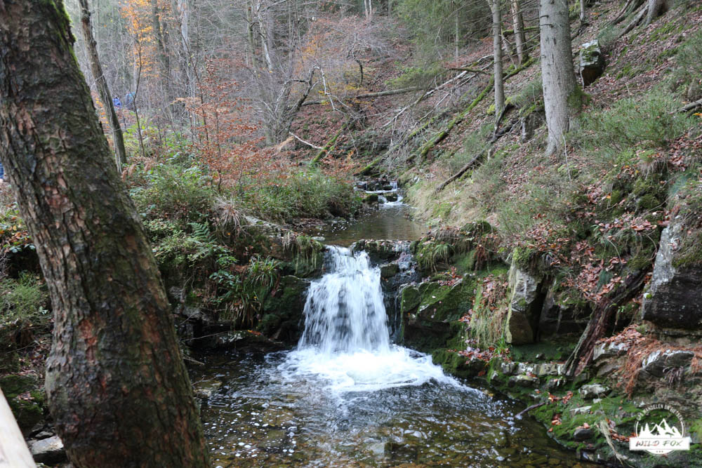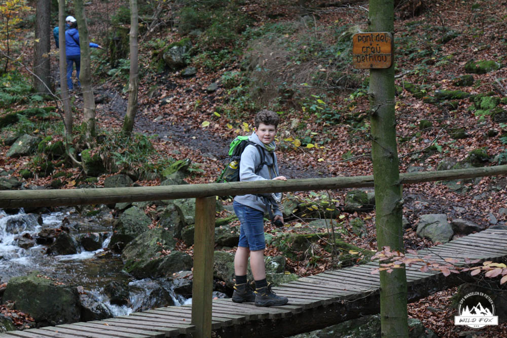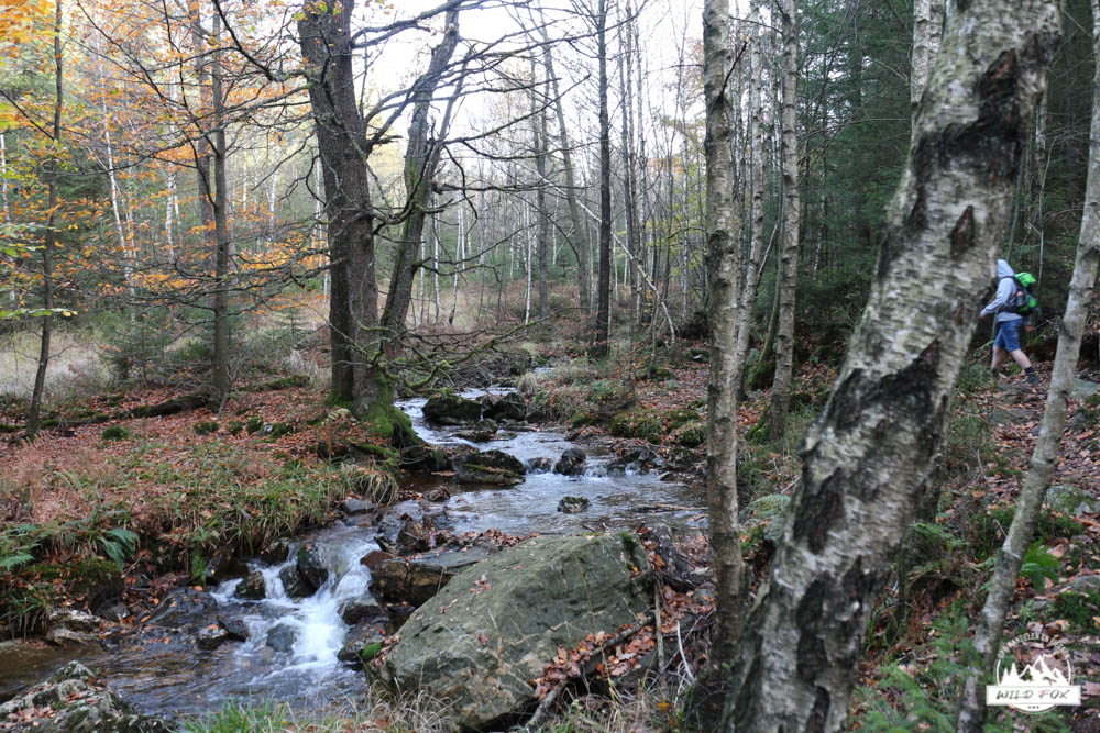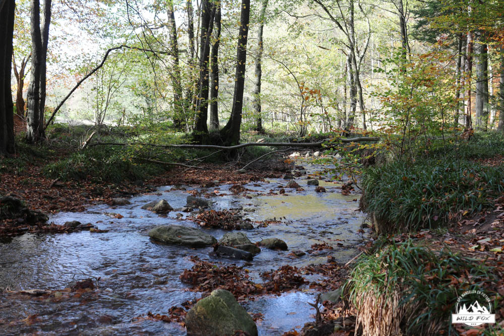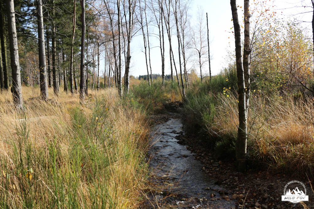 We starten onze wandeling aan de Sawe. Het eerste deel van onze wandeling zullen we naast dit pittoreske riviertje blijven wandelen, in een gelijkmatige tred naar boven. Het is steeds bergop maar nooit echt kuitenbijters dus het valt wel mee. Het is rustig op het wandelpad, we komen wel mensen tegen maar nooit echt veel. We genieten van het kabbelend beekje naast ons, en af en toe moeten we de Sawe oversteken over houten bruggetjes. Eens boven gekomen veranderd het uitzicht want we bevinden ons nu op het plateau van de hoge venen. We wandelen door een dichte bebossing om na een paar honderd meter uit te komen bij de open vlakte van het veengebied. Hier stoppen we even om van het uitzicht te genieten en onze sandwiches op te eten.