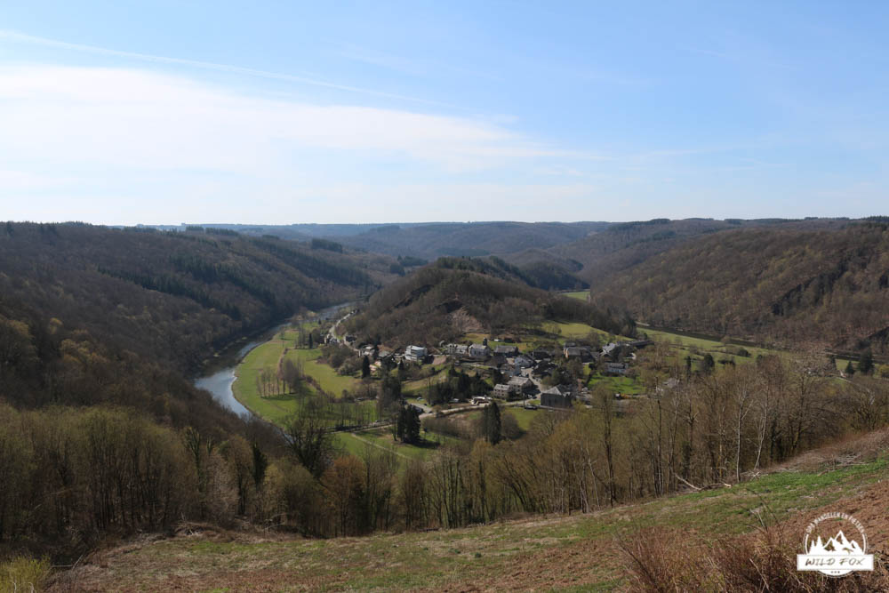 De Laddertjeswandeling in Rochehaut is 5.5 km en heeft vele namen. Van wandeling 43 tot Les Échelles de Rochehaut, het is dus gewoon dezelfde wandeling. Het startpunt is in het dorpje Rochehaut. Je kan het beste je auto parkeren bij het panoramapunt op Frahan. Dit is een van de mooiste uitzichten in de Ardennen dus die pik je meteen mee.