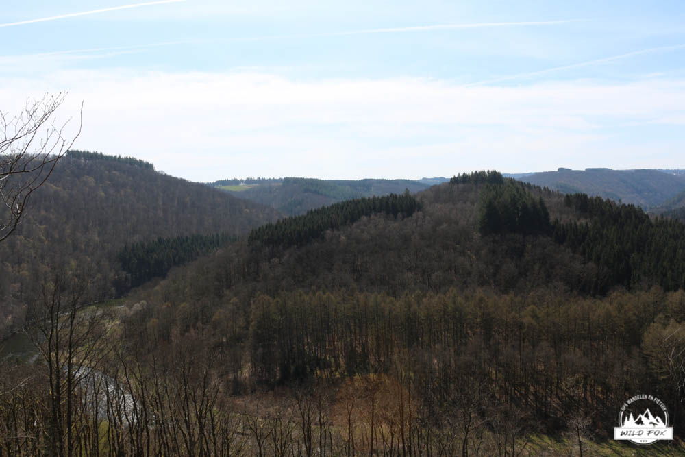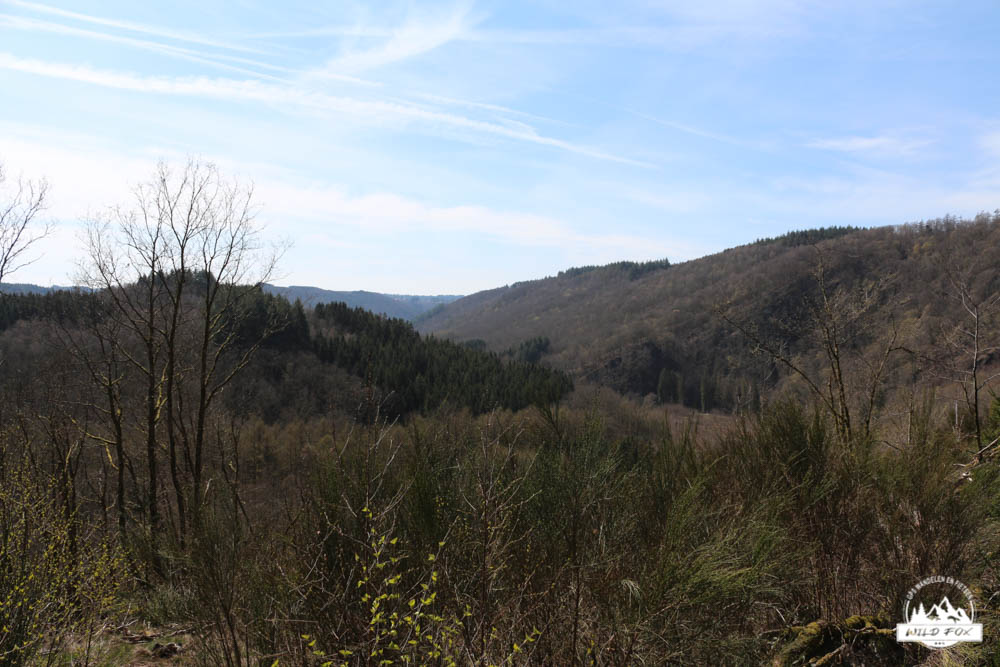 Na deze ladder staan er nog meer op je te wachten. Tijdens het klimmen wordt je op talloze plekken getrakteerd op een mooi uitzicht. Het panorama op de vallei van de Semois is echt super mooi. Bij het klimmen merk je ook dat het bos dichter wordt. Blijf dus goed opletten op uitstekende takken. Soms gaat het bospad wat naar beneden en dan opeens weer steil omhoog. In totaal zijn er 4 ladders die je steeds hoger brengen. Op een gegeven moment zie je weer het waarschuwingsbord en dat ben je aan het einde van de laddertjeswandeling. Het laatste deel van de wandeling is eenvoudig en brengt je over vlak terrein weer naar het centrum van Rochehaut.