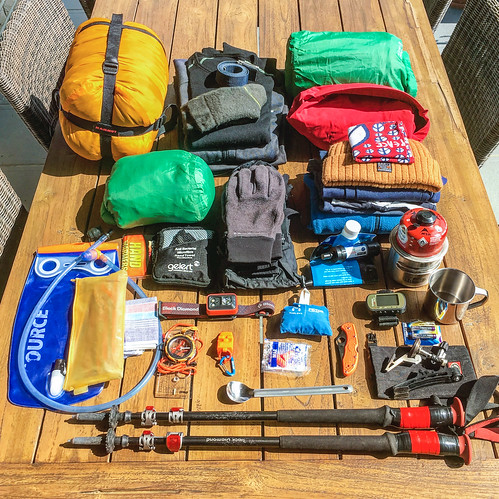 Iedereen die al eens een trektocht heeft ondernomen weet dat je de eerste keren veel te veel meeneemt. Al doende leert men zeggen ze altijd, en dat klopt inderdaad. Verzamel steeds het noodzakelijke zoals eten en drinken eerst, kleren moet je niet te veel meenemen, sokken en onderbroeken 2 paar (1 dragen en 1 wassen en laten drogen) T-shirt, broek, fleece en vest nemen wij maar 1 van mee.