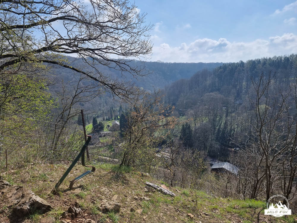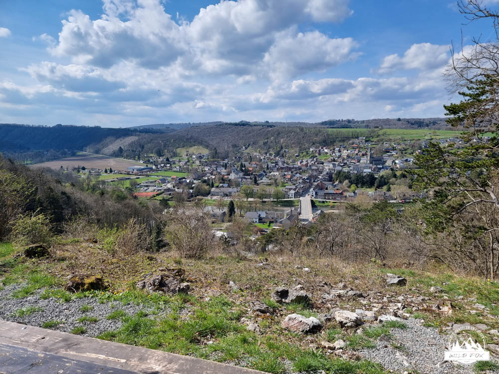 Vanuit hier dalen we af naar Hamoir via een heel erg steil pad voor de eerste 30 meter. Als je wilt, kun je het brede pad nemen en vervolgens het volgende pad links nemen. Het is niet lang meer maar het gaat zonder moeite. Tenzij je de omweg neemt, zul je er vanaf Hamoir niet veel van zien, want we gaan direct richting Sy langs de rivier via het weggetje dat naar het kasteel van Lassus leidt.