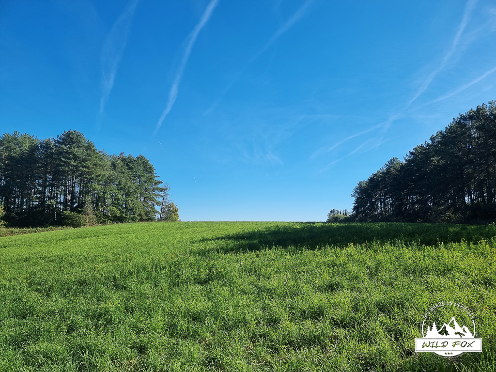 Na een korte klim komen we boven op de berg tussen de velden uit. Hier hebben we prachtige vergezichten. Deze streek is zo mooi, en niet ver van huis voor ons. Hier zijn we even gestopt om onze sandwichen op te eten, onze buikjes waren al serieus aan het knorren.