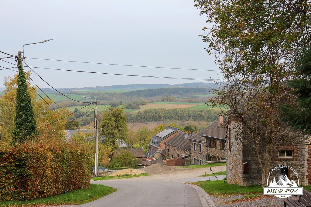Deze streek zal onze omgeving zijn waar we vandaag in vertoeven. Het is een beetje een verassingswandeling voor Inga, tegen het einde van de wandeling passeren we op een plaats die voor ons wel een beetje emotioneel is. We zullen passeren langs de Pierre Haina, soms ook Witte Menhir genoemd, is een natuurlijke rots in de gemeente Wéris in de Belgische provincie Luxemburg. Deze rots hebben wij ontdekt een 20-tal jaren geleden en zijn hier al een aantal keer gepasseerd in die tijd. Telkens genieten wij van het uitzicht en is het een beetje “onze rots” geworden. Het is de eerste keer dat we hier langskomen met onze kinderen, maar ssstttt, Inga weet nog van niks. (hihi). We starten speciaal in een dorp naast Wéris zodat ze zeker niet ziet in welke omgeving we zijn.