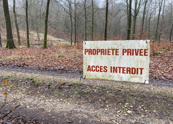 Je mag in principe wel elke weg nemen waar géén bordje ‘Verboden toegang’ of ‘Accès interdit’ is aangebracht, ook al is dit mogelijk een privé-weg.