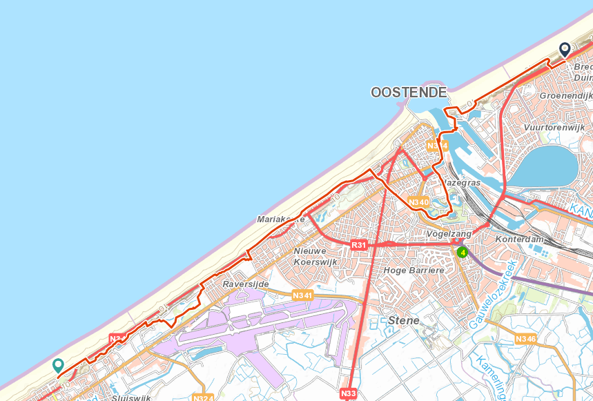De laatste 2km zal ons langs het strand naar Bredene brengen, het eindpunt van deze etappe.