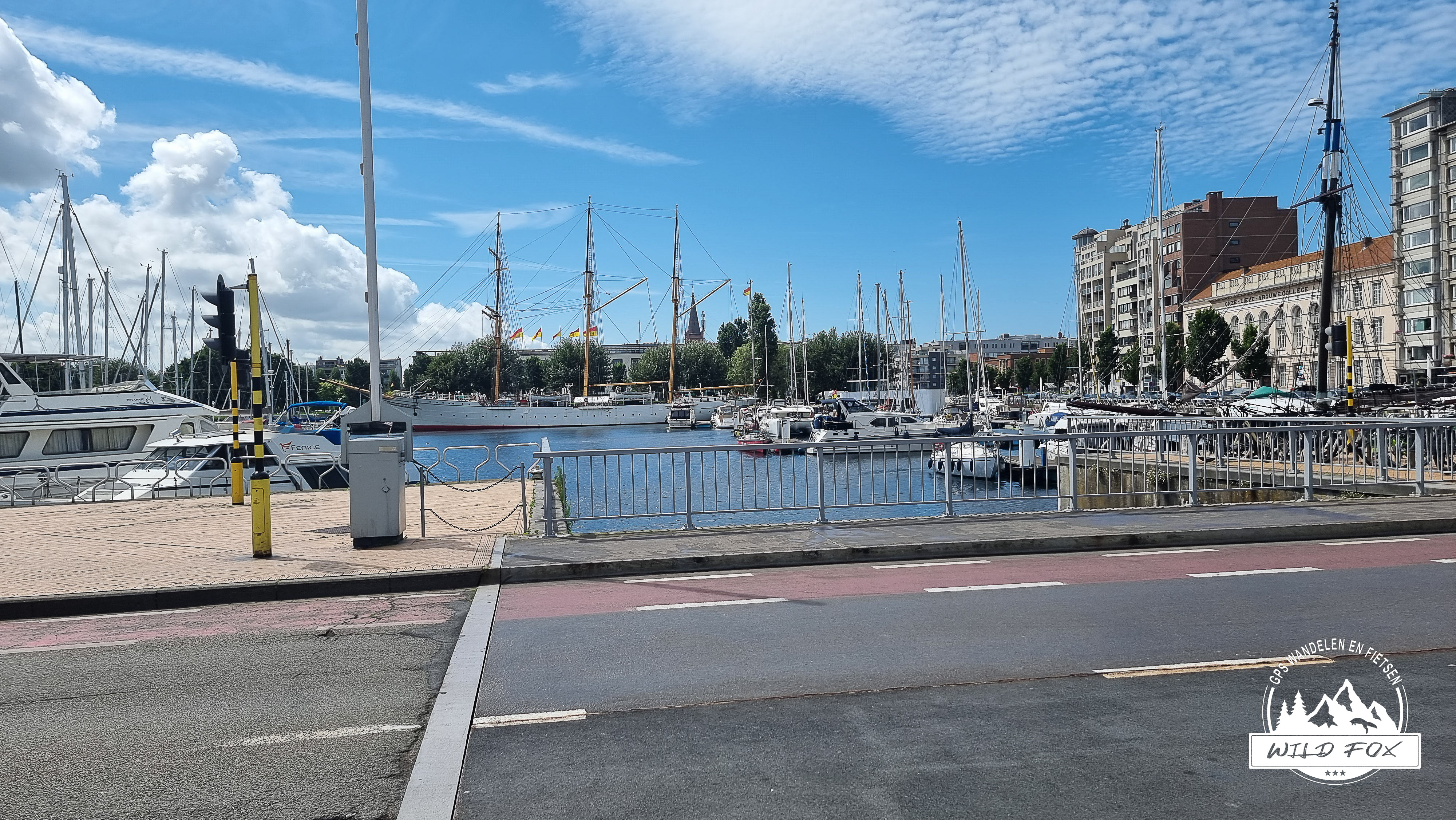 De kusttram bracht ons naar Middelkerke waar we al snel in de duinen doken om richting Raverszijde te stappen. Raverszijde, een overblijfsel van de Duitse verdedigingslinie Antlantikwall. Deze reeks bunkers waren gebouwd om de kusten van het bezette Europa te verdedigen. Je kan dit openlucht museum bezoeken. Wij passeerden dit museum en stapten door richting Oostende. Hier stapten we voorbij het graf van Kunstenaar James Ensor, wandelden we langs de kustdijk naar het Thermae palace hotel en stapten we door het rustige stadspark. Het weer was ondertussen helemaal omgeslaan en de zon scheen terug vol.. Uiteindelijk stapten we verder tot aan de haven en de lekkere viskraampjes naar de overzetboot. Deze boot zal ons naar de overkant van de havengeul brengen waar we onze tocht verder kunnen zetten.