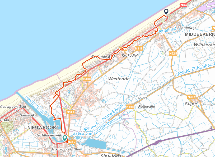 Streek GR kust: Nieuwpoort – Middelkerke ↔13,8km ↑152m ↓139m