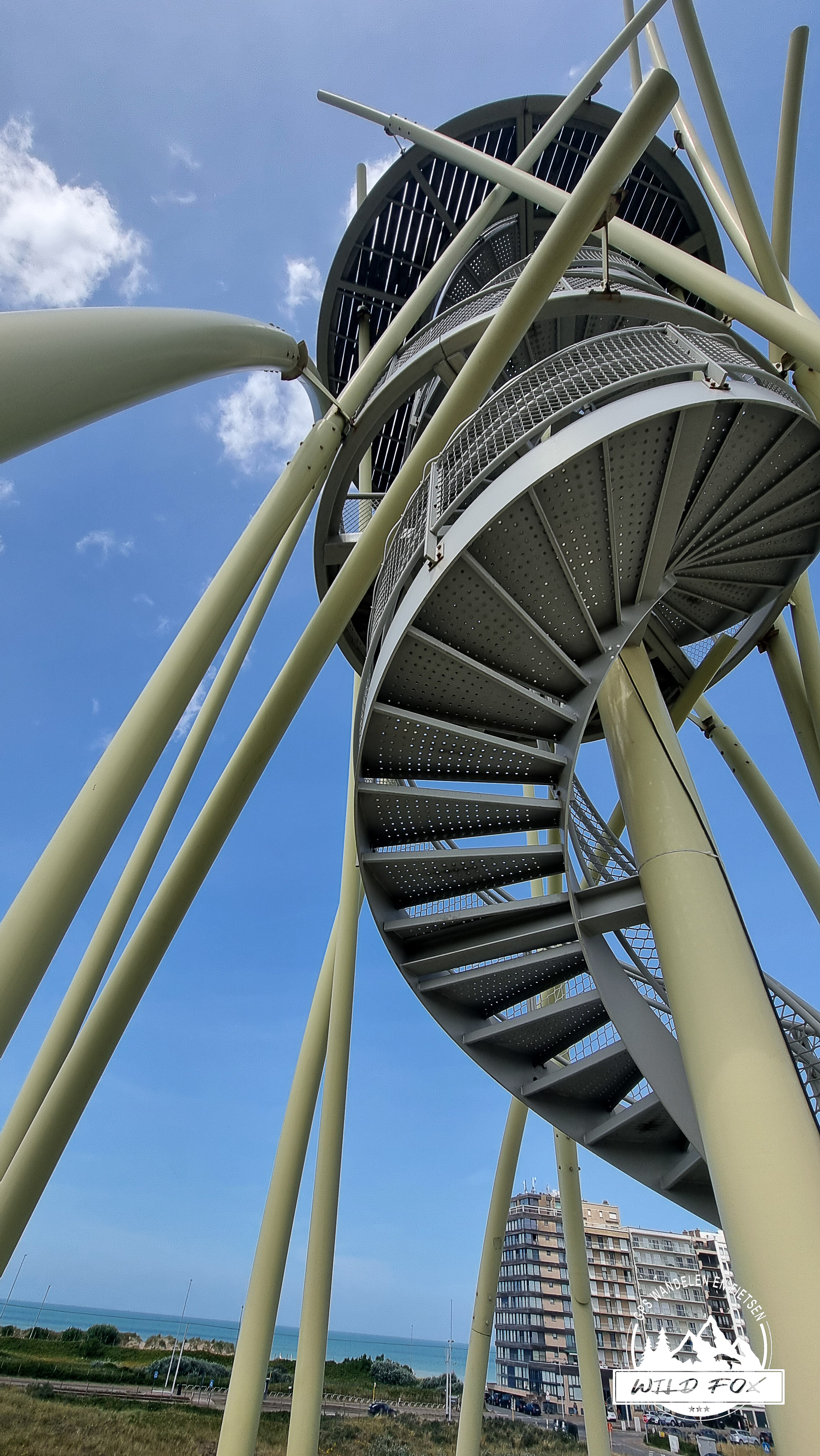 We stappen verder in de richting van Middelkereke, welk we in de verte al zagen opduiken. Het wandelpad door de duinen was verhard en perfect bewandelbaar. Net voor we Middelkerke binnen stapten wou Kamiel de uitkijktoren beklimmen, wat hij ook deed. Ik bleef veilig beneden staan, ik heb het zo niet met hoogtes.