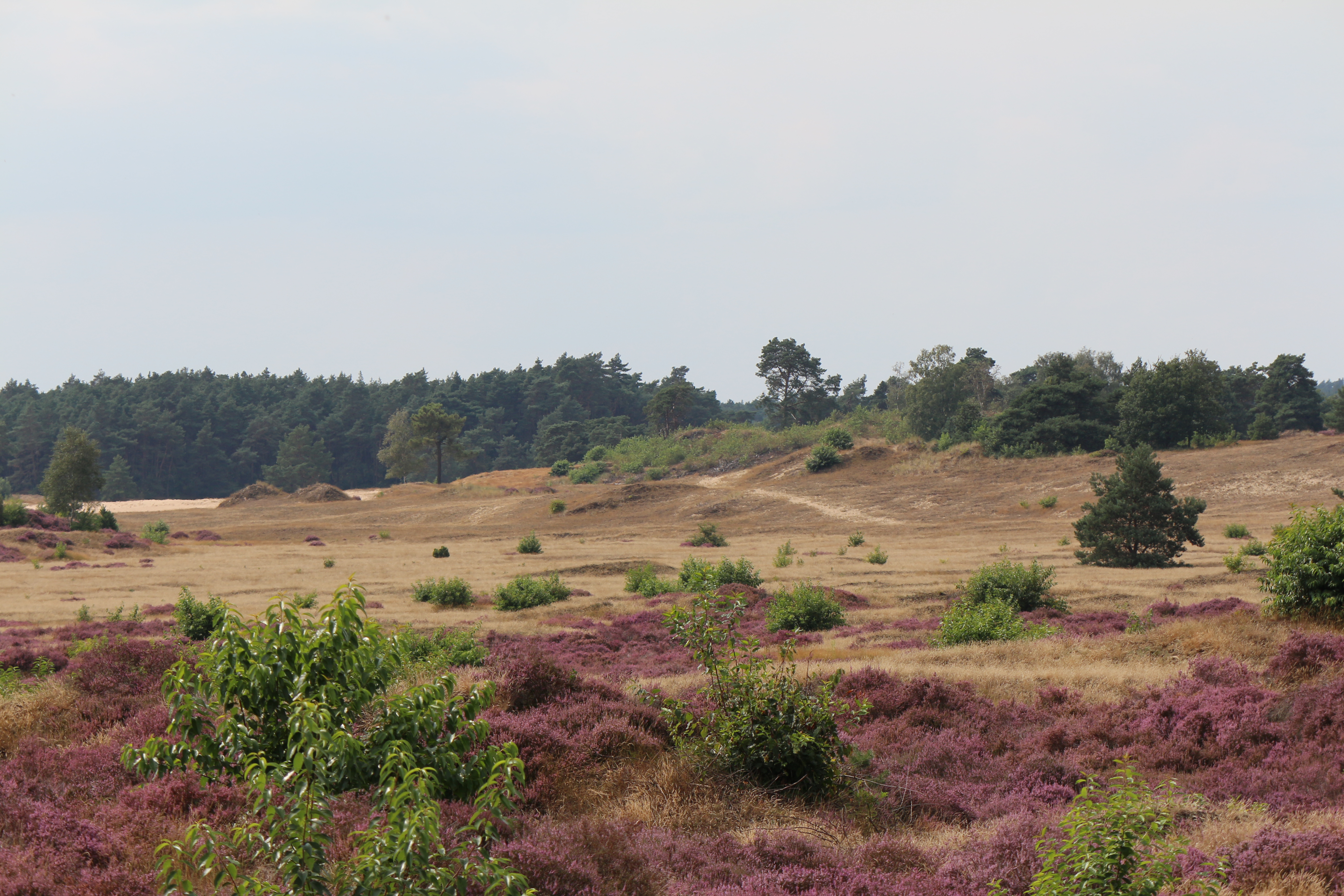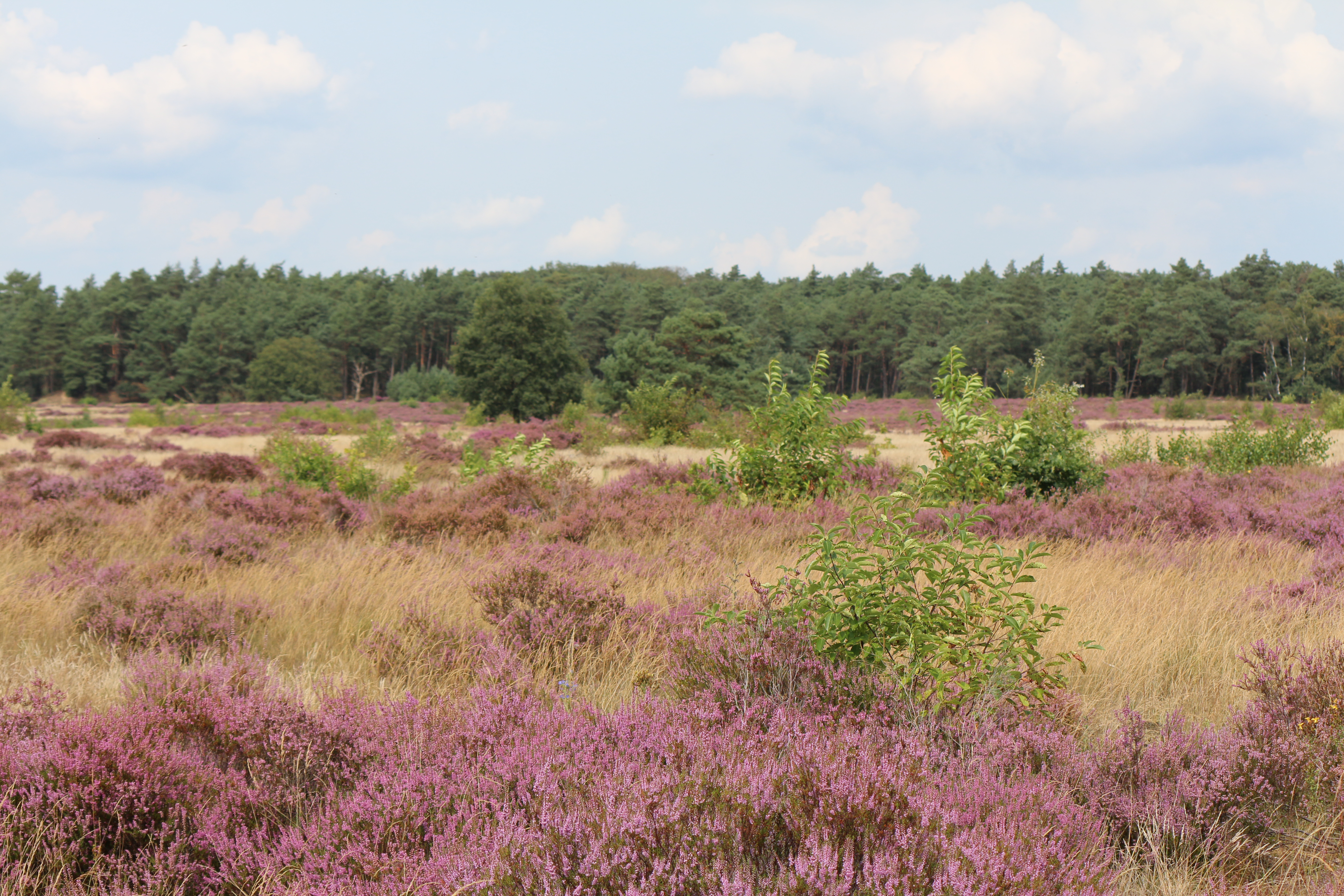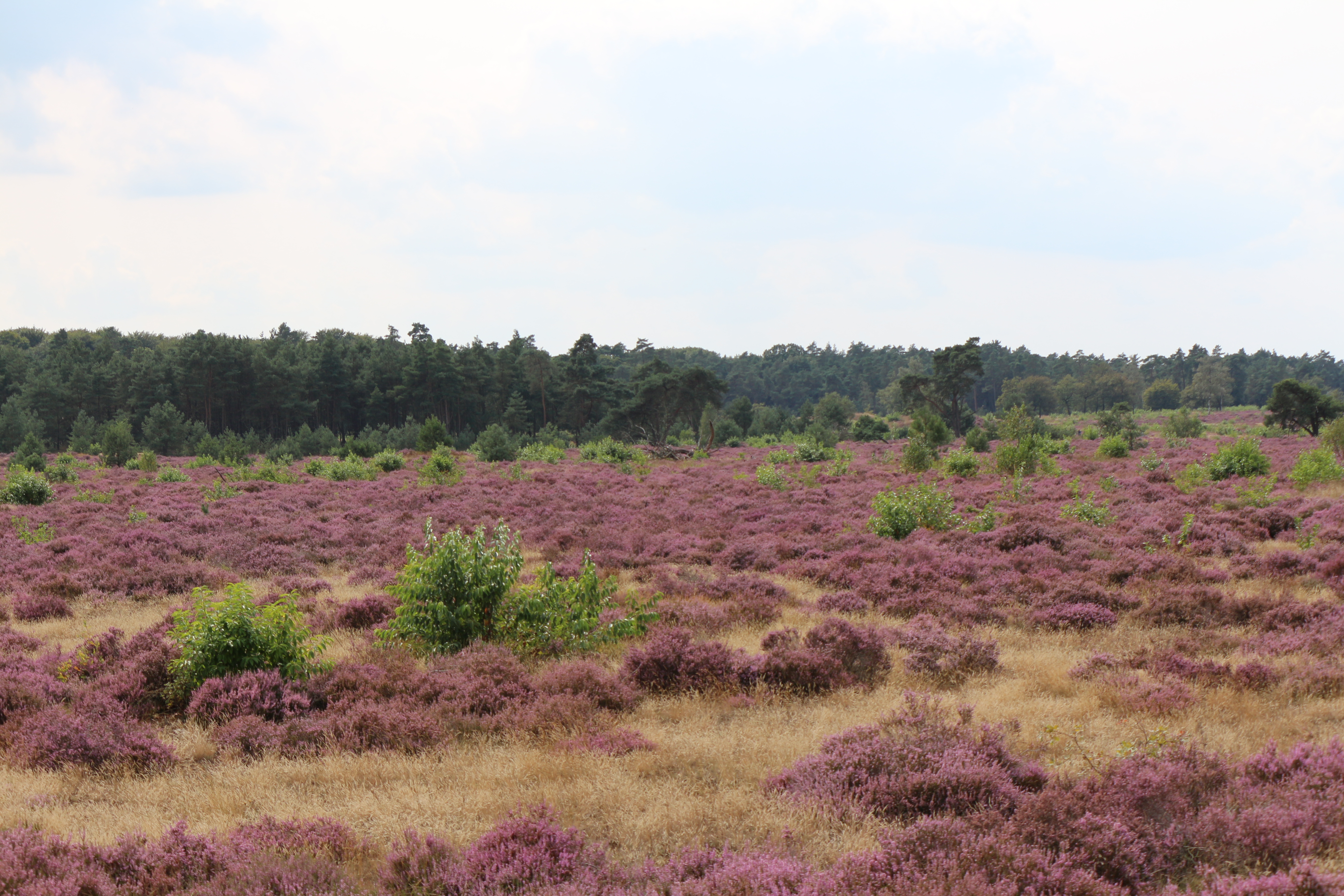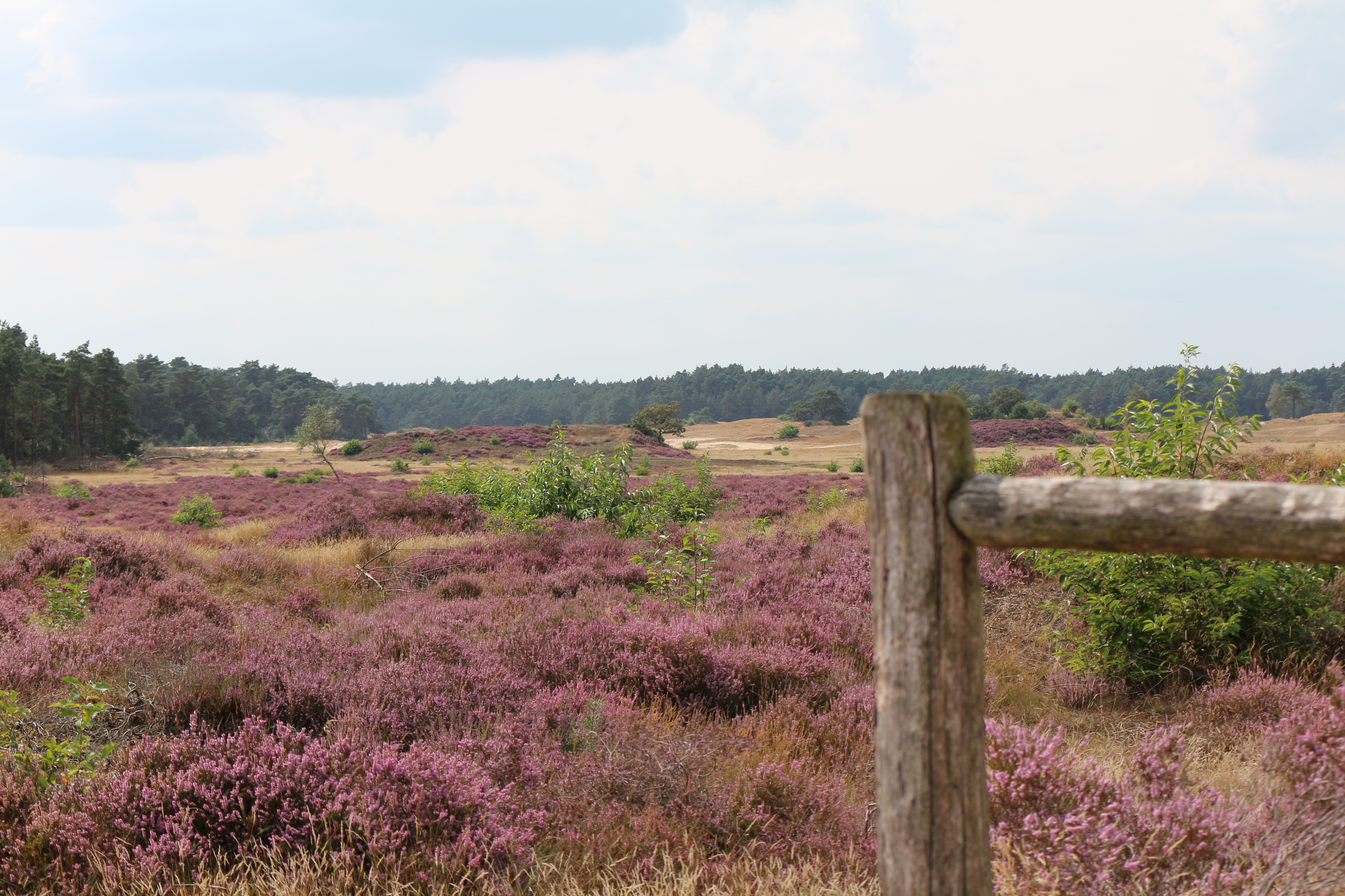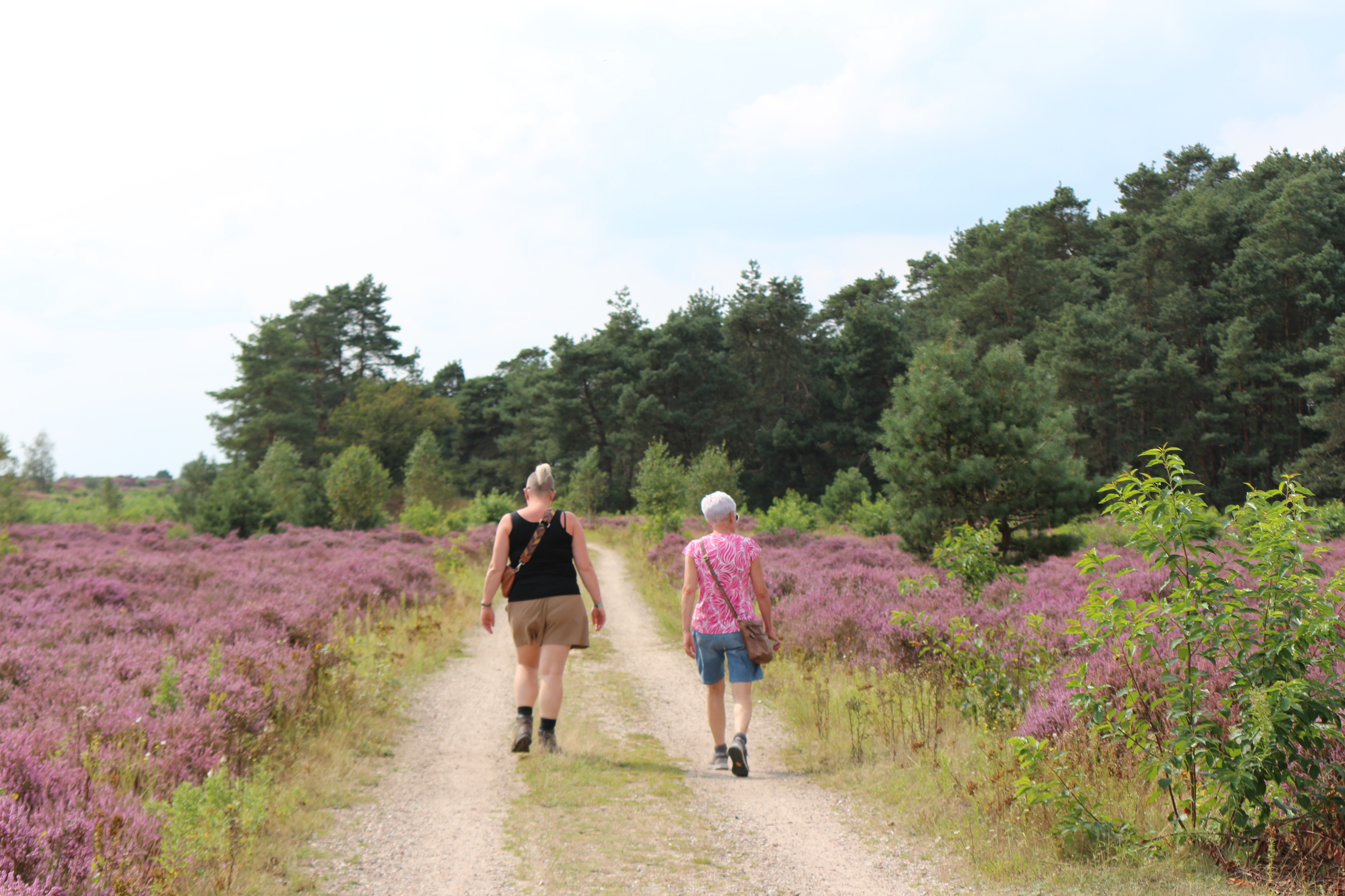 We stappen verder naast het gebouw en al gauw overvalt te stilte ons. Wat is het hier prachtig en stil, het paarse heidekruid bloeit weelderig. Het pad kronkelt verder door de heide en we genieten allemaal van de stilte die hier heerst.
