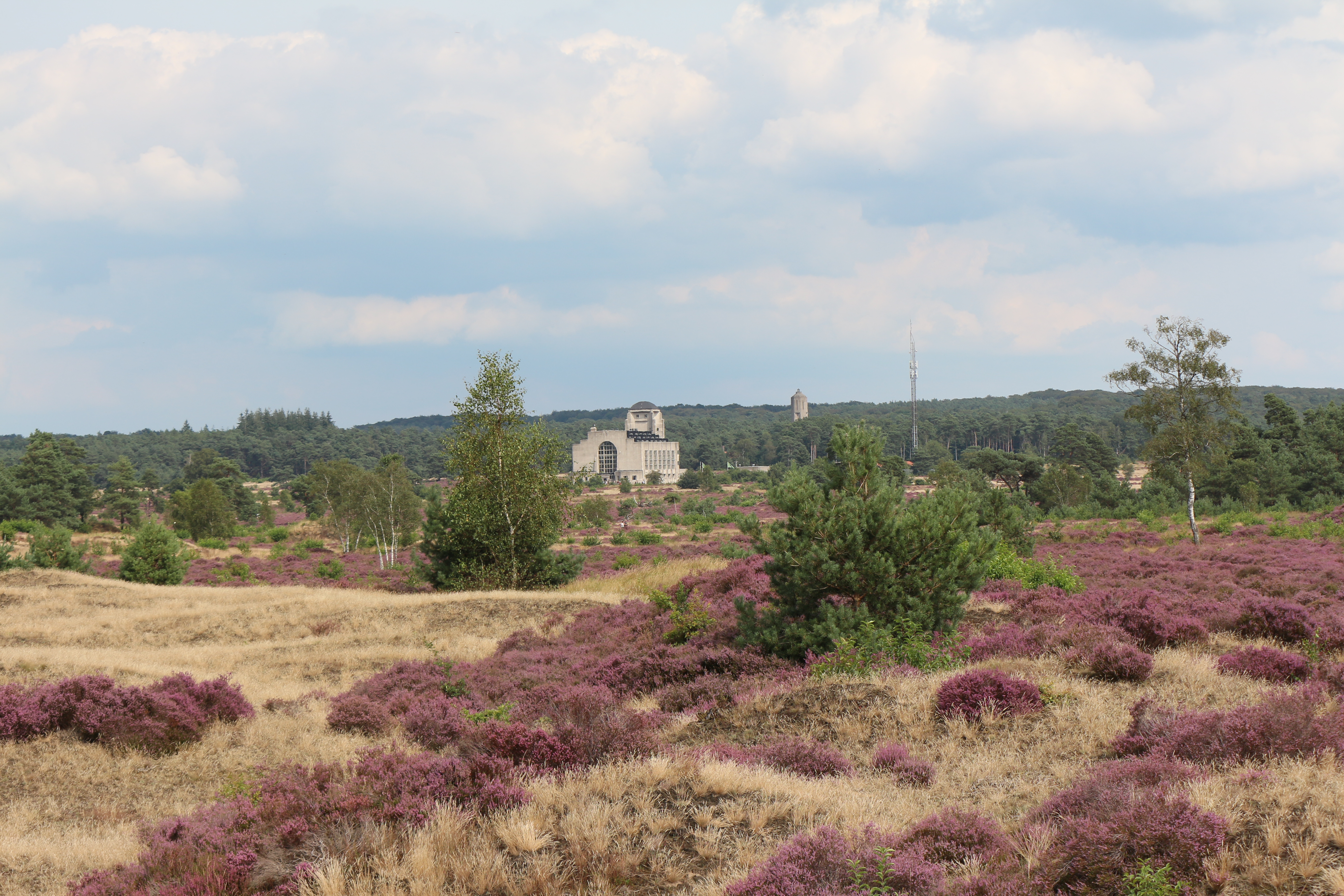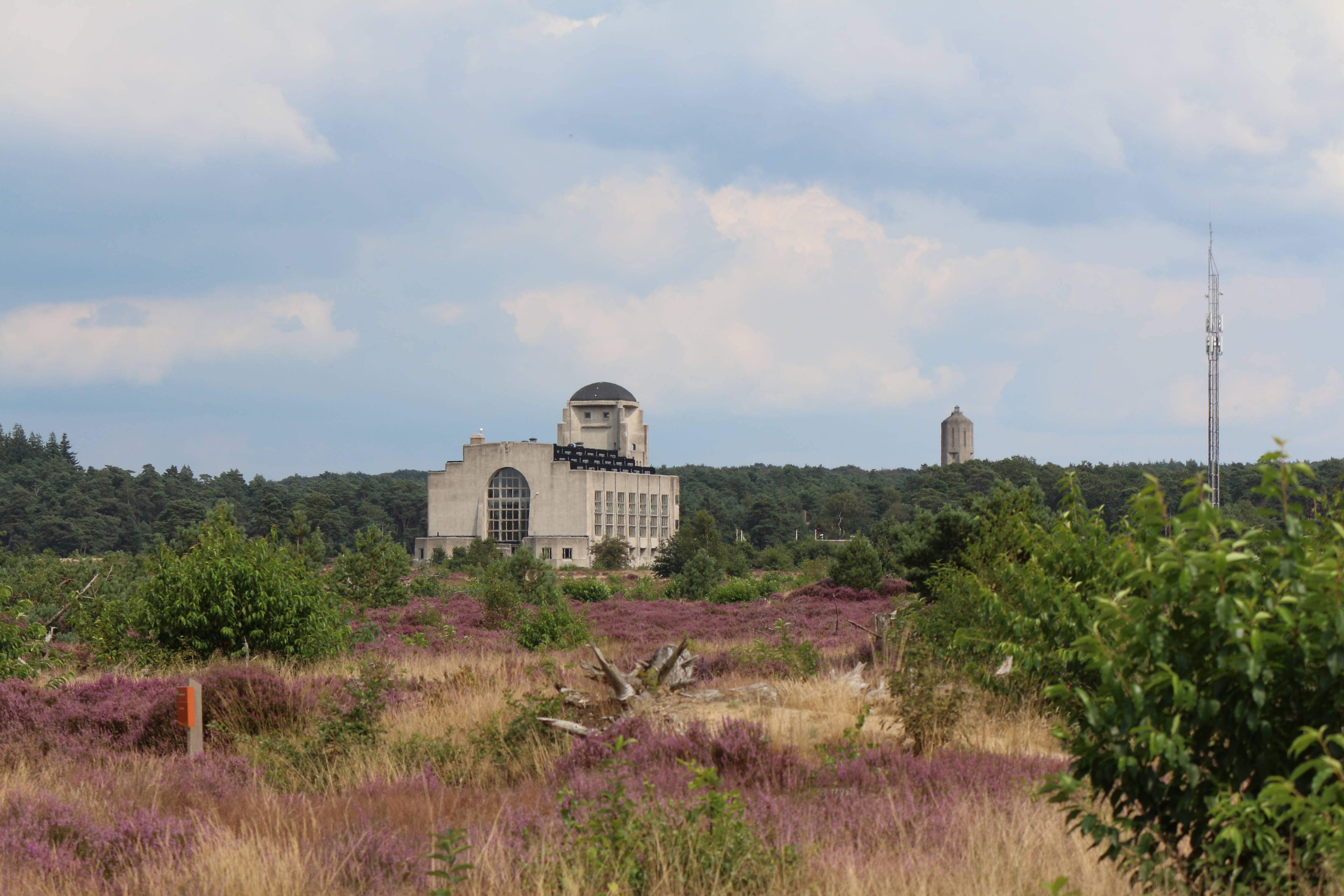 Een rustig begin van de vakantie, een wandeling in de buurt van de gebouwen van radio Kootwijk. We starten onze wandeling op de parking van radio Kootwijk. Oma en Opa wandelen mee. We passeren eerst een immense toren en al snel wandelen we richting het gebouw van Radio Kootwijk. Hier is het een beetje druk omdat vele mensen het imposante gebouw willen bekijken, spijtig genoeg is het vandaag gesloten en kunnen we het niet bezoeken.