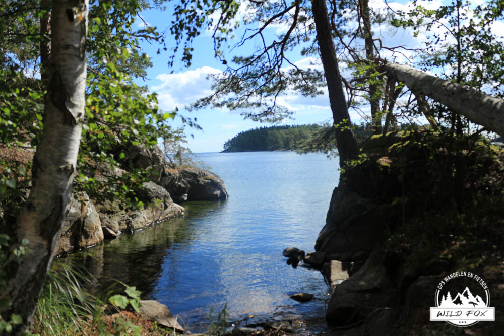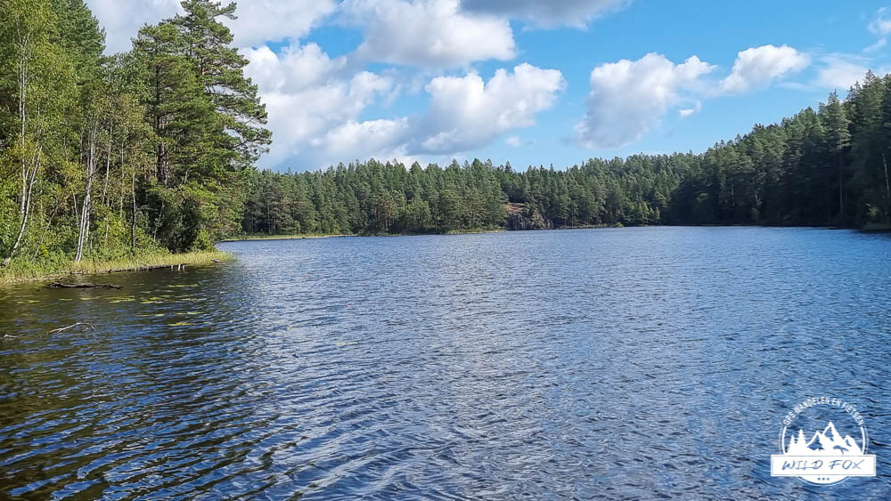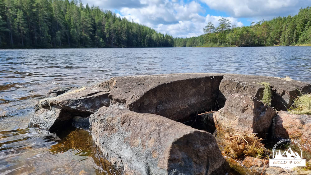 Halverwege de route verandert het landschap: van dicht bos naar een opener gebied met rotsen en vergezichten, waar je het archipelachtige karakter van Tiveden voelt. Richting het einde van de lus wandel je weer richting het Vätternmeer, waar er meerdere plekken zijn om te zwemmen — helder water, kiezelstrandjes en absolute rust.