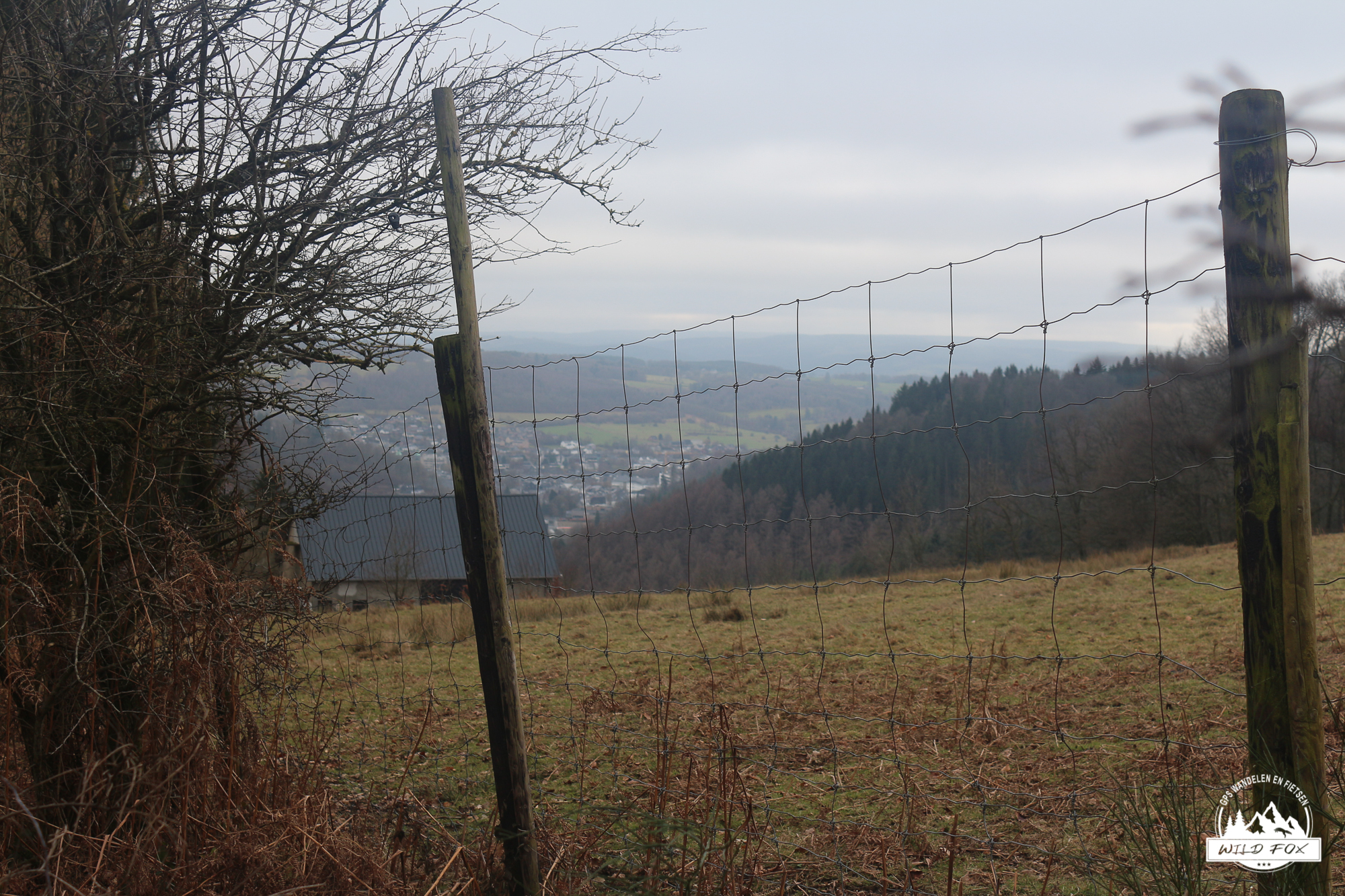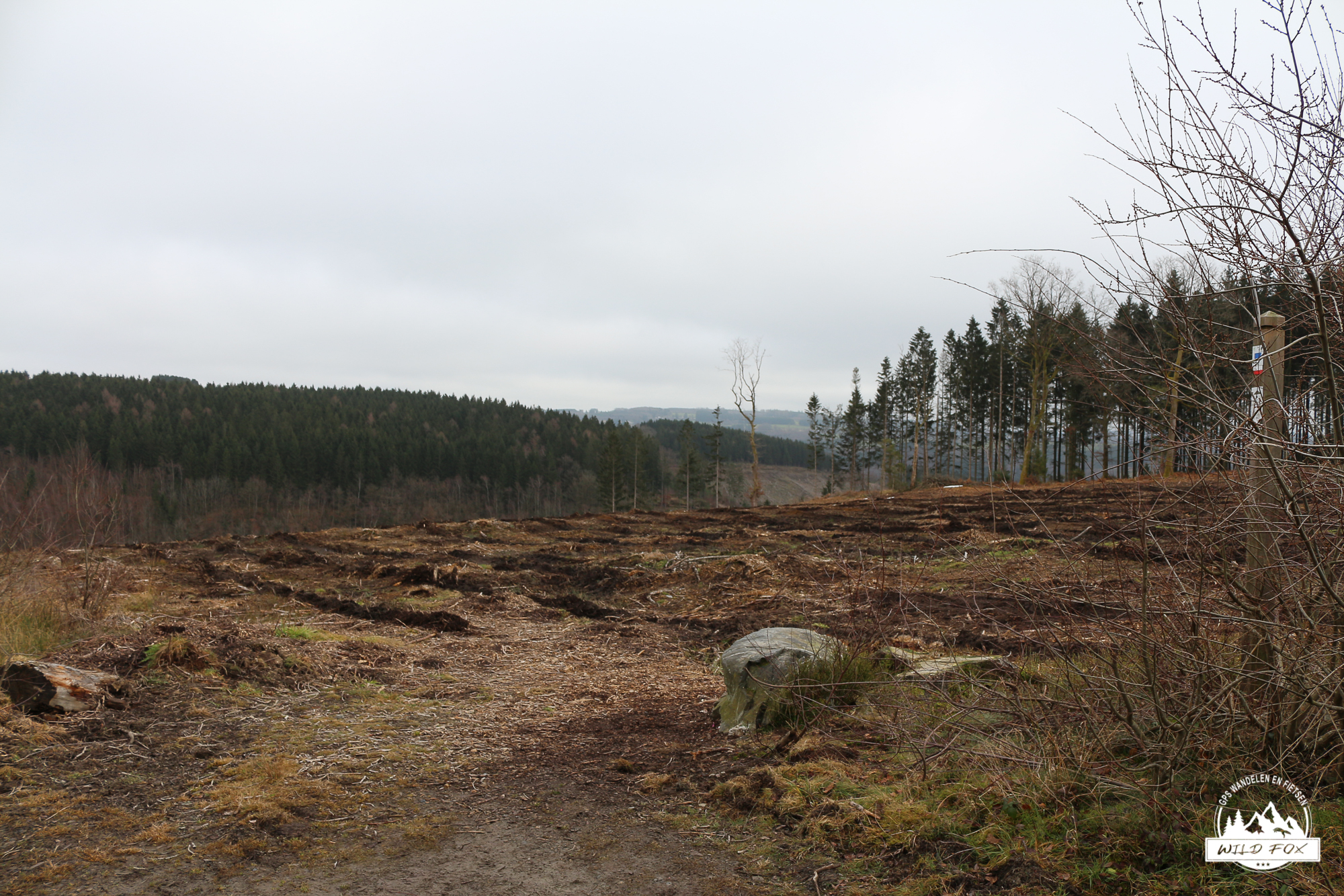 Na de pauze volgden we het pad verder door het bos. De route werd geleidelijk breder en rustiger, en het laatste stuk liep nog wel een beetje pittig terug richting Ferme Libert. De sneeuwresten verdwenen langzaam, maar de winterse sfeer bleef aanwezig.