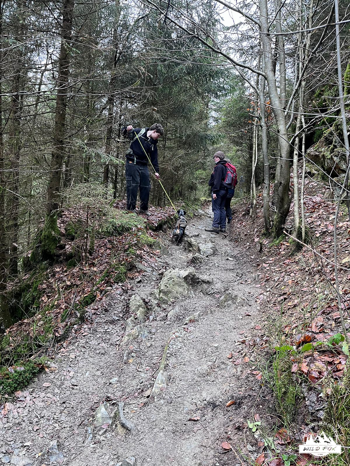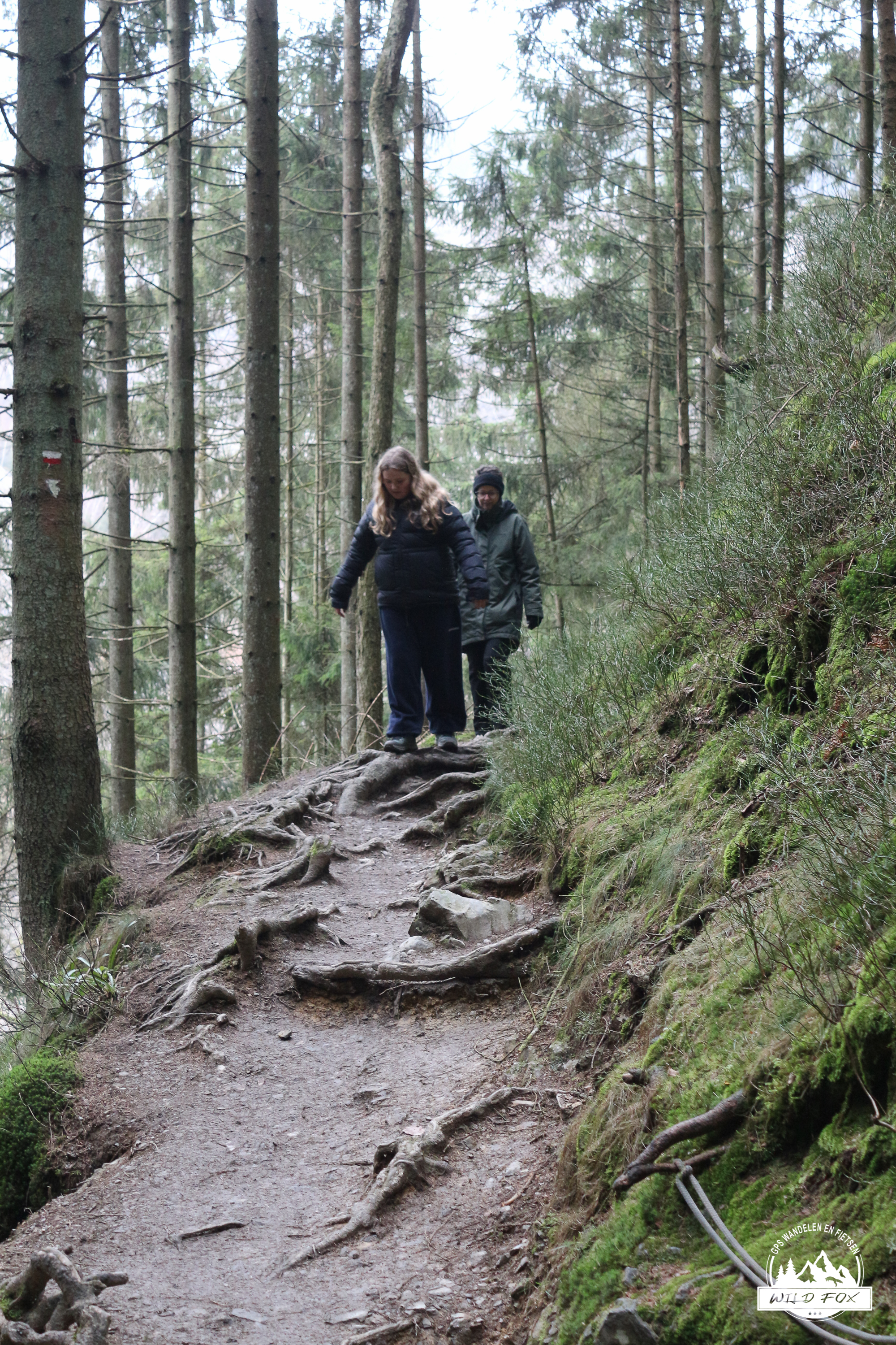 Al snel doken we het bos in. Het pad daalde zachtjes af richting de Trôs Marets, en het geruis van de rivier kondigde aan dat het echte werk ging beginnen.
